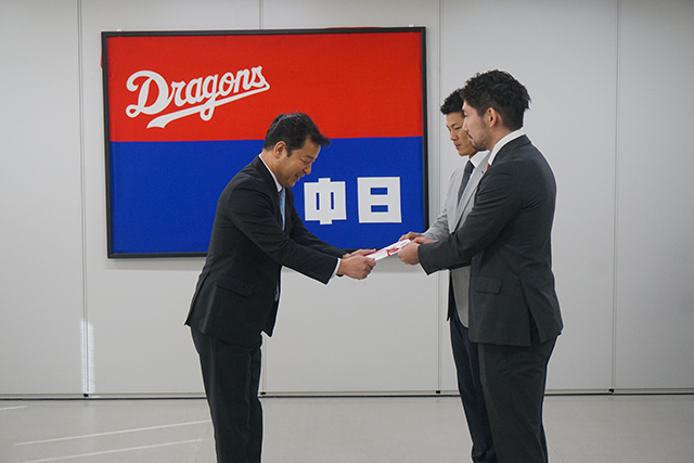 のチャリティーオークションで集まった売上金73万2699円を中日ドラゴンズ・大野奨太捕手・