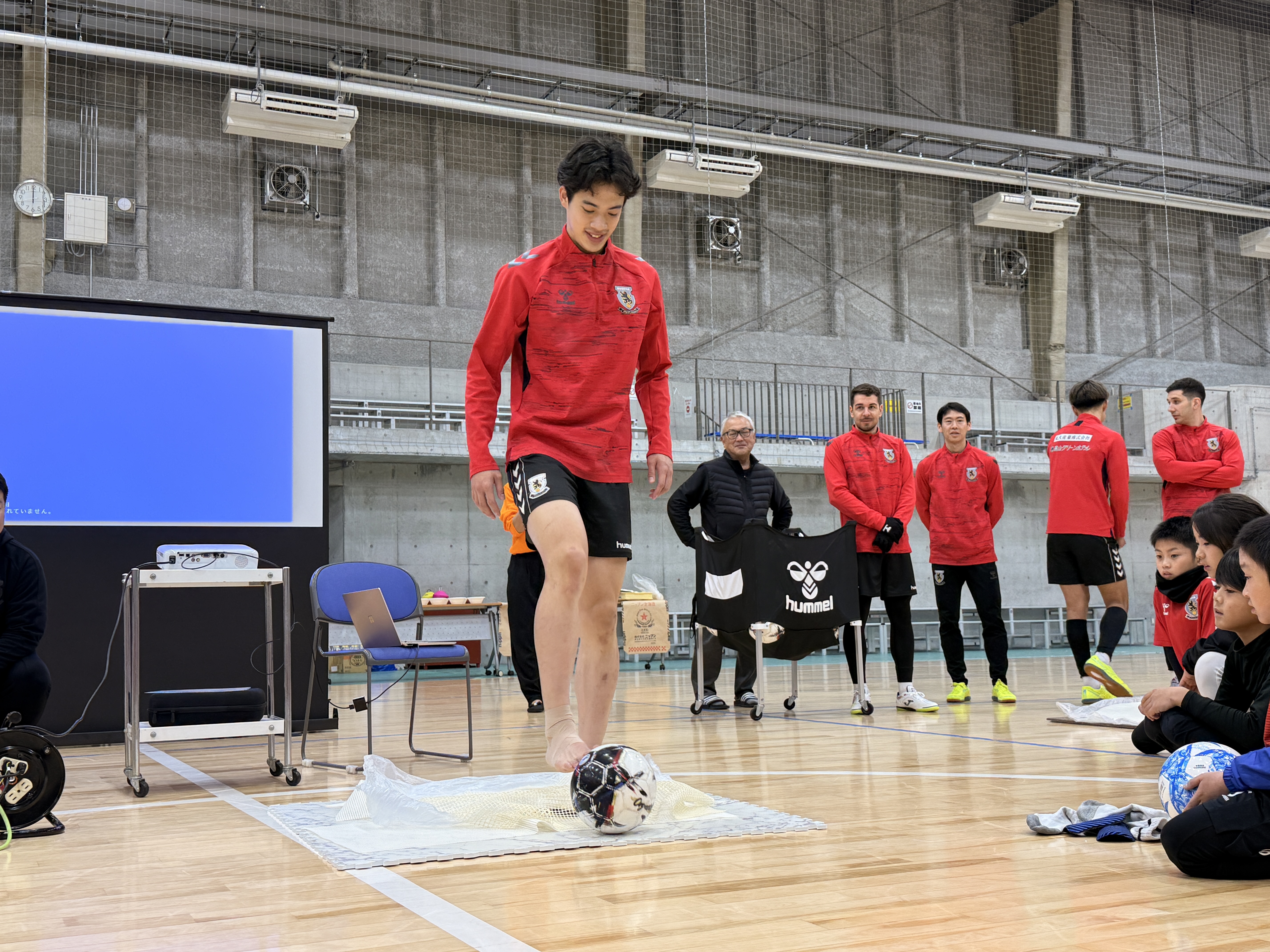 フットサルと「うどん作り」を融合させたユニークな実演に、会場からは大きな歓声が上がり、非常に盛り上がりを見せました。